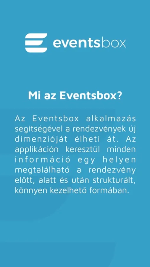 Az Eventsbox alkalmazás segítségével meghívottként a rendezvények új dimenzióját élheti át. Az applikáción keresztül minden információt egy helyen találhat meg a rendezvény előtt, alatt és után strukturált, könnyen kezelhető formában.