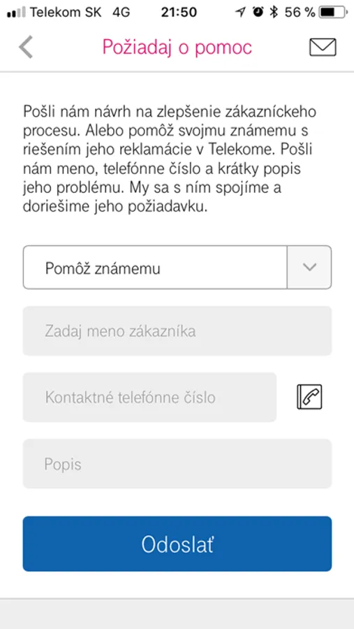 Aplikácia umožňuje zasielať návrhy na zlepšovanie zákazníckej skôsenosti.