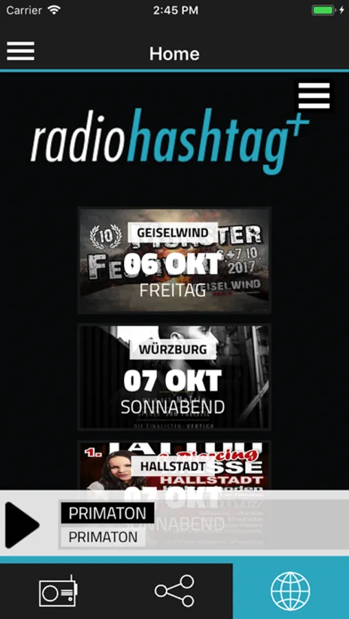 Hör uns weltweit im Internet über die Hashtag+ App.