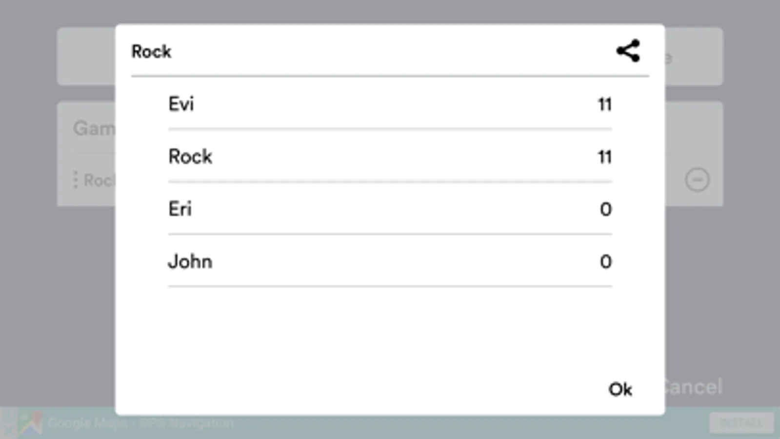 On clicking the edit icon user can again edit by clicking plus or minus hands for current round.The scoreboard is shown when the game is finished and user can share the scoreboard. They can also delete the game from the game board.There is also ability of restoring the game.