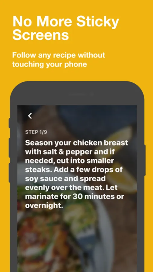 No more sticky screens. No more constant unlocking. No more losing your place. Follow a recipe from start to finish without touching the screen. All controlled by a simple phrase: “HeyFood”.