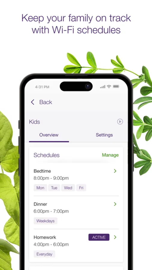 * Pause Wi-Fi device access, or set up schedules to take back family time