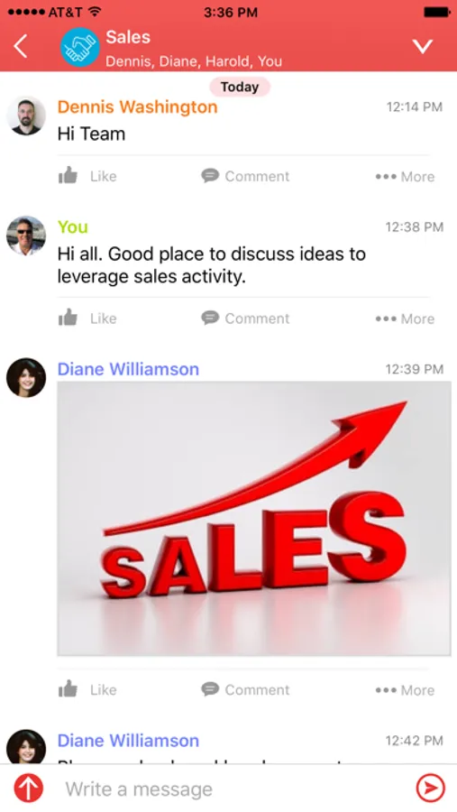 • Multi-media, persistent team messaging supports text, links, audio, video, images, files, folders and live broadcasts