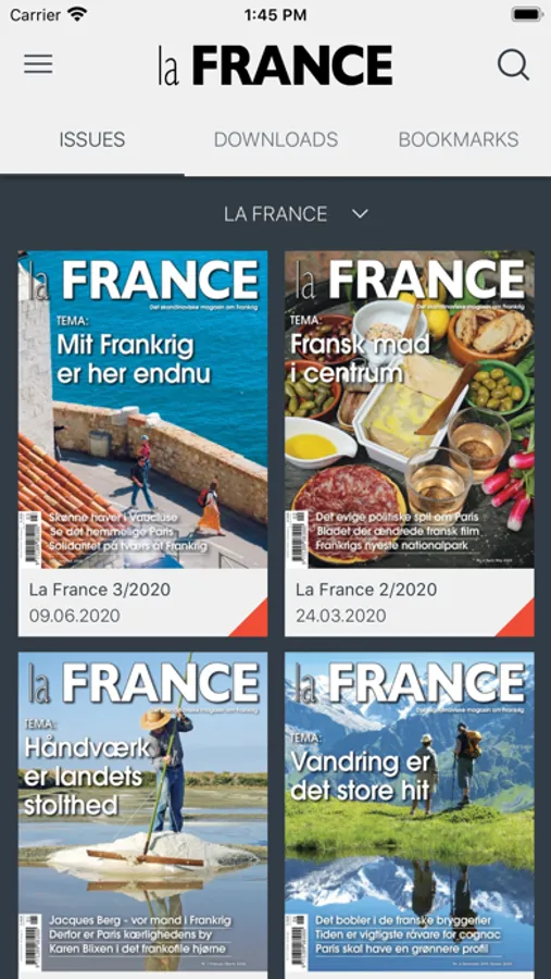 La France - det skandinaviske magasin om Frankrig skrevet på dansk - har været udgivet siden 1999. Magasinet, der udkommer 6 gange årligt, giver næring til drømmene om Frankrig, den franske livsstil og kultur året rundt. Her finder du opskrifter på fransk mad, vinoplevelser og gode rejsetips. Og i La France følger du tæt i sporene på franskmænd, hvad enten det er vinbønder, olivendyrkere eller slotsejere. Vi bevæger os over hele Frankrig fra Pyrenæernes bjerge til Normandiets kyster, fra Atlanterhavets østersbanker til vinmarkerne i Alsace, fra Paris til Provence. Vi skriver kort sagt om hele Frankrig - også om de oversøiske regioner og de frankofone lande. Det er rejse- og kulturoplevelser ud over det sædvanlige. Her finder du historierne og atmosfæren om den franske livsstil - l'art de vivre.