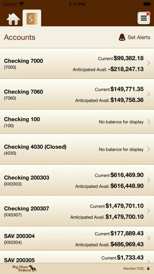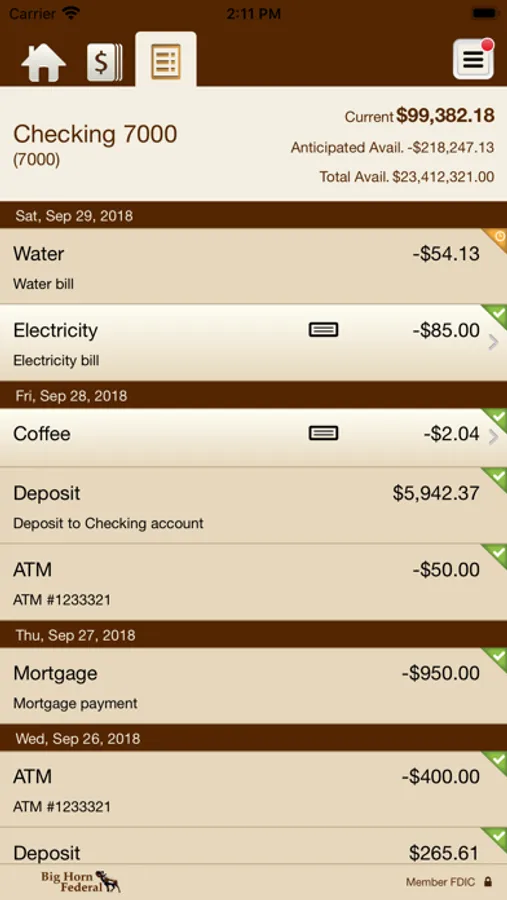 There is no fee from Big Horn Federal. Connectivity and usage rates may apply, contact your wireless service provider for more details.