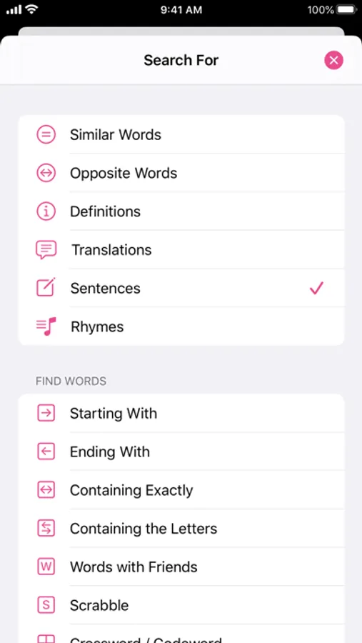Find similar and opposite words with our advanced thesaurus, along with a range of other word tools: sentences, rhymes, related word types, matching words, definitions, and translations.