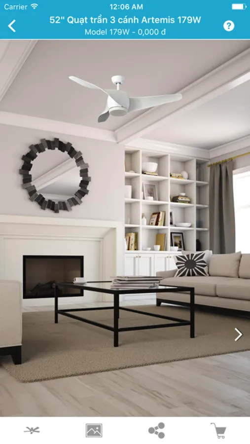 - Công nghệ xem quạt thực tế ảo (visualize) cho phép bạn xem trước kiểu dáng, chất liệu, sải cánh (mm), động cơ AC/DC trước khi quyết định chọn mua quạt trần phù hợp.