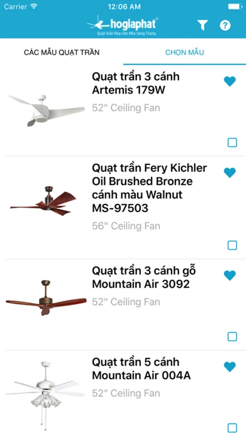 - Tính năng ‘lựa chọn ưa thích’ giúp bạn áp dụng kiểu dáng quạt trần ưa thích rồi tự so sánh tính năng, giá cả trước khi chọn lựa.