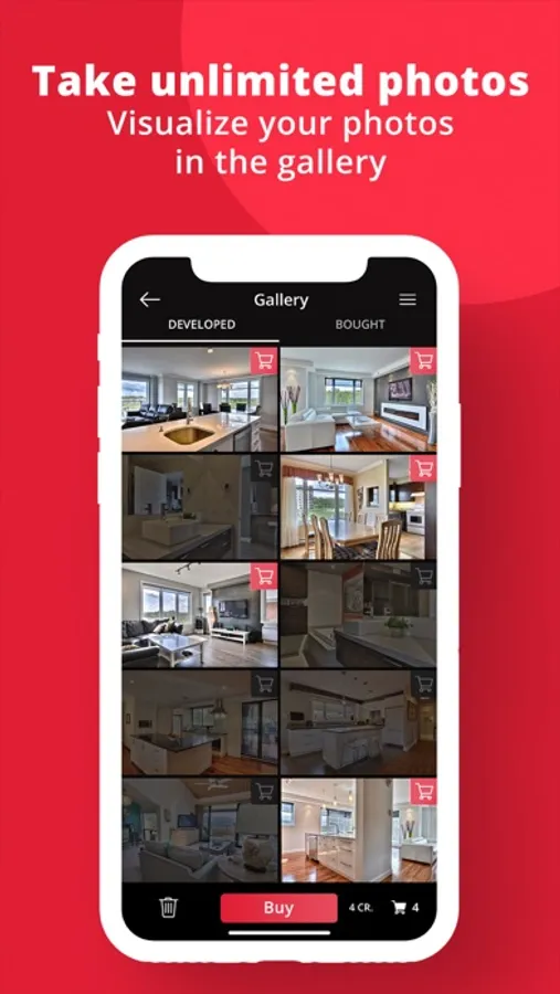 The App is free to download. Take as many photos as you want for free. Photos are marked with a watermark. In order to take off the watermarks, save and use the HDR pictures you will need to purchase photos individually or in bulk. Buy only the HDR photos you want. 1 HDR picture starts at $0.99. Lower price packages available to purchase.