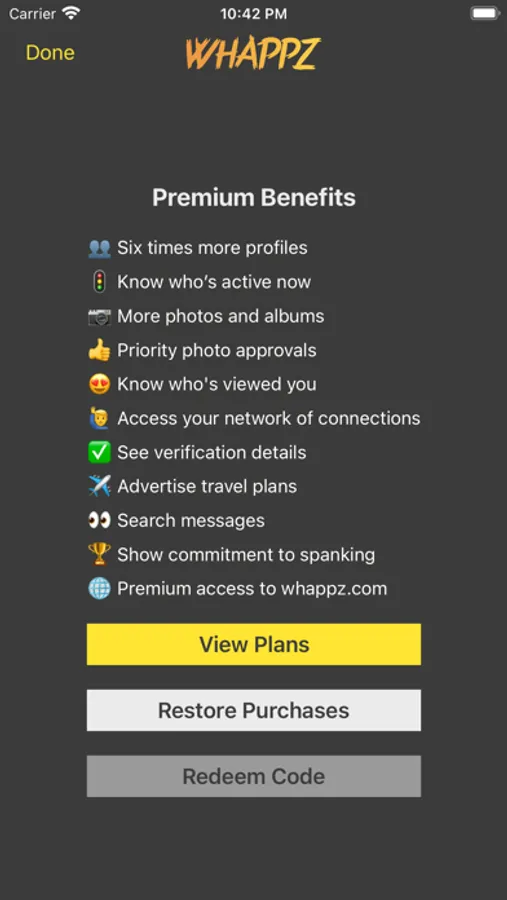 You may use In-App purchase to upgrade to Whappz Premium at any time. Plans range in duration, starting at 1 month, and include the following benefits: