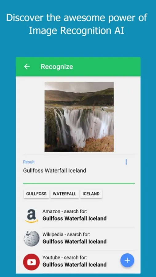 "Image Recognizer" quickly classifies images into thousands of categories (e.g., "sailboat", "lion", "Eiffel Tower"), detects individual objects within images, and finds and reads printed words contained within images.