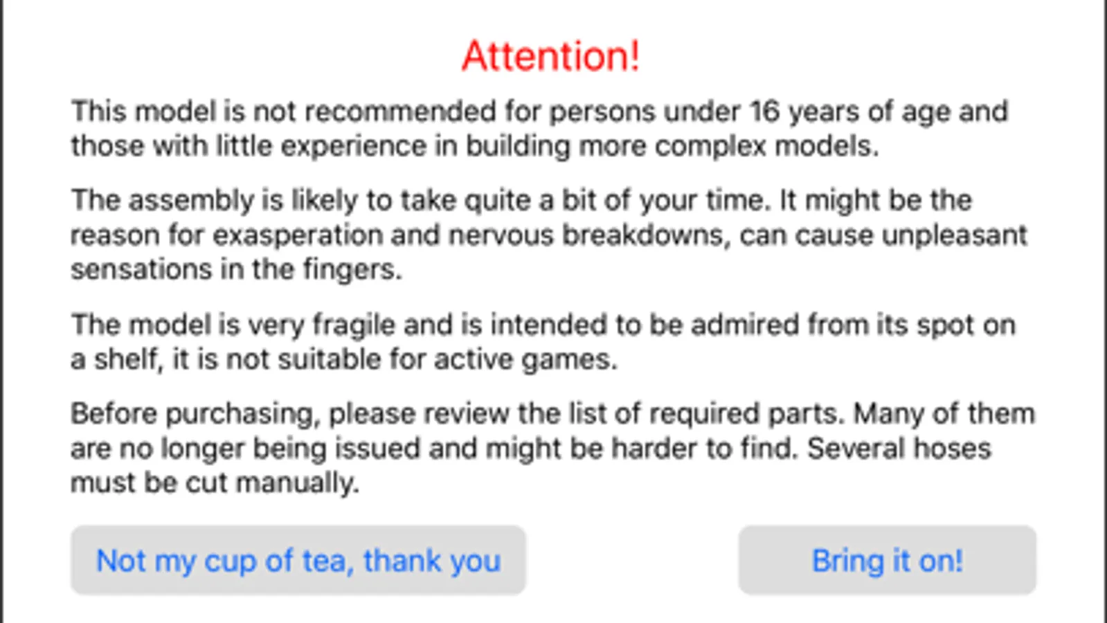 – This model is not recommended for persons under 16 years of age and those with little experience in building more complex models.