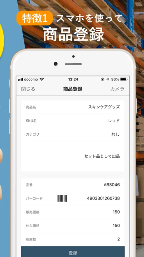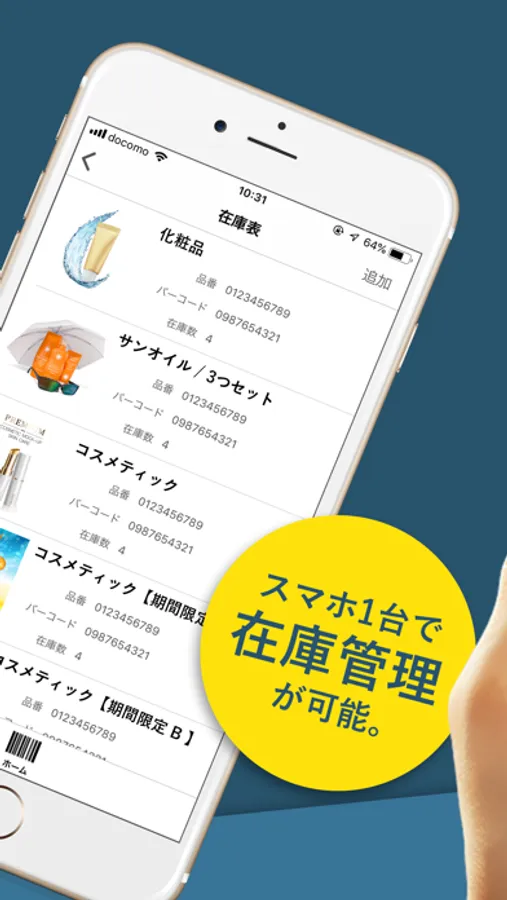 商品バーコードをスキャンするだけで効率的に入荷、出荷をクラウド管理できます。