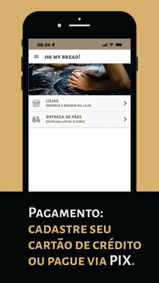 Compre pelo App e pegue seus pães na Loja mais perto de você. Ou peça Entrega, com possibilidade de taxa zero de entrega. No App da Oh My Bread você visualiza todos os produtos da sua loja preferida em tempo real, pode consultar as informações de cada produto, realizar compras ou pedir delivery. O pagamento é realizado no próprio App, via cartão de crédito ou via PIX.