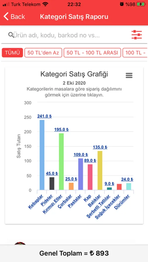 » Gün sonu, masa raporu, personel raporu, ürün raporu, kategori raporu gibi bir çok raporlama sayesinde işletmenizi daha iyi bir seviyeye getirebilir,