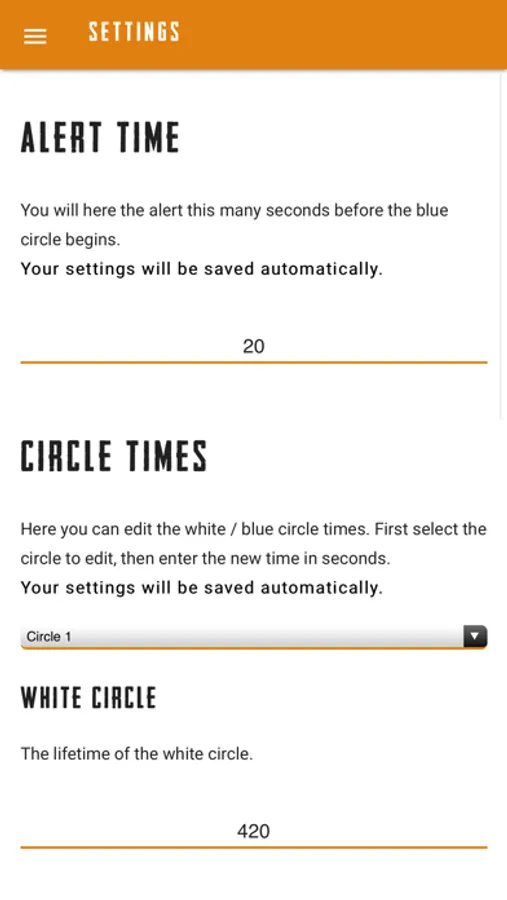 The settings page allows you to edit the alert / circle timers and heal times.