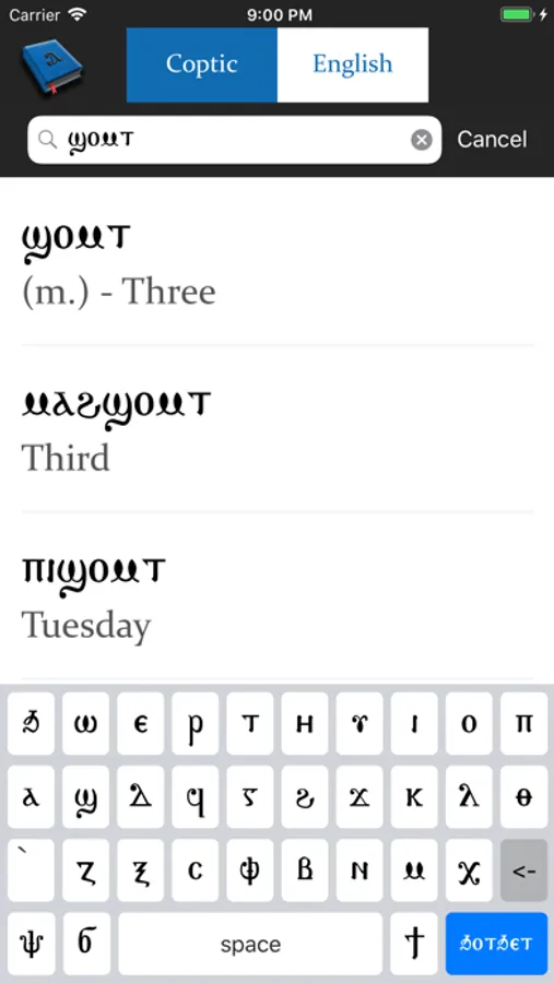 This comprehensive Coptic-English Dictionary is easy to use and features a fully integrated search bar with a built-in Coptic Keyboard.