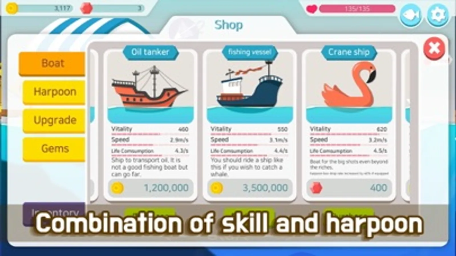 - Find out your unique voyage method to race to the end of the ocean, by using well-combined spear attributes and fish skills.