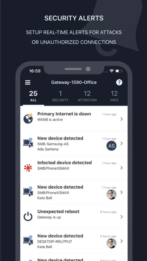 - Security alerts- get real-time notification of malicious attacks or unauthorized device connections.
