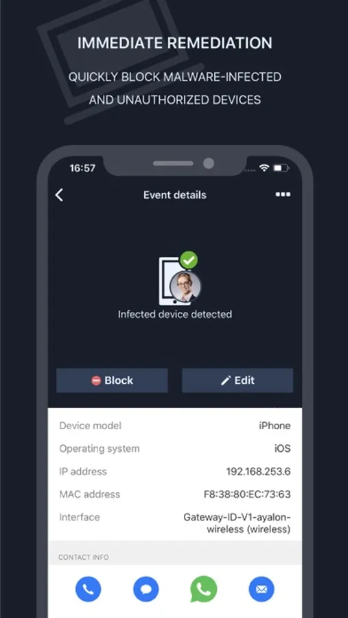 - On-the-spot threat mitigation – quickly block malware-infected devices and view infection details for further investigation.