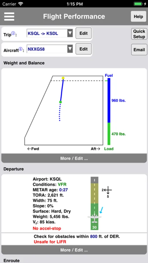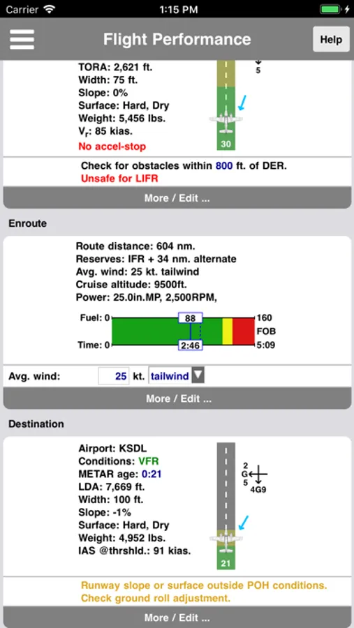 Baron Performance computes all the useful performance numbers for flight planning for Beechcraft Baron aircraft. It includes calculations for takeoff, landing, climb, cruise, descent, instrument procedures as well as emergencies. It also includes an interactive hold calculator, a risk analysis tool, one engine inoperative page, radar page, and a glide distance calculator that handles head and tailwinds.