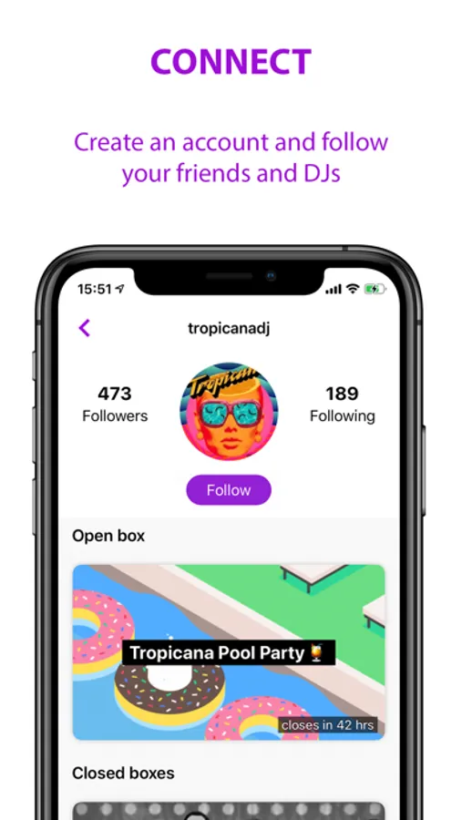 As a guest, you can influence the music by dropping song requests or by voting on other guests requests. You can also create an account to follow your favorite hosts/DJs and be the first to know when they create a new box.