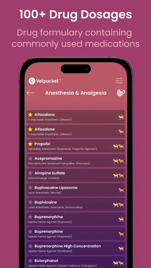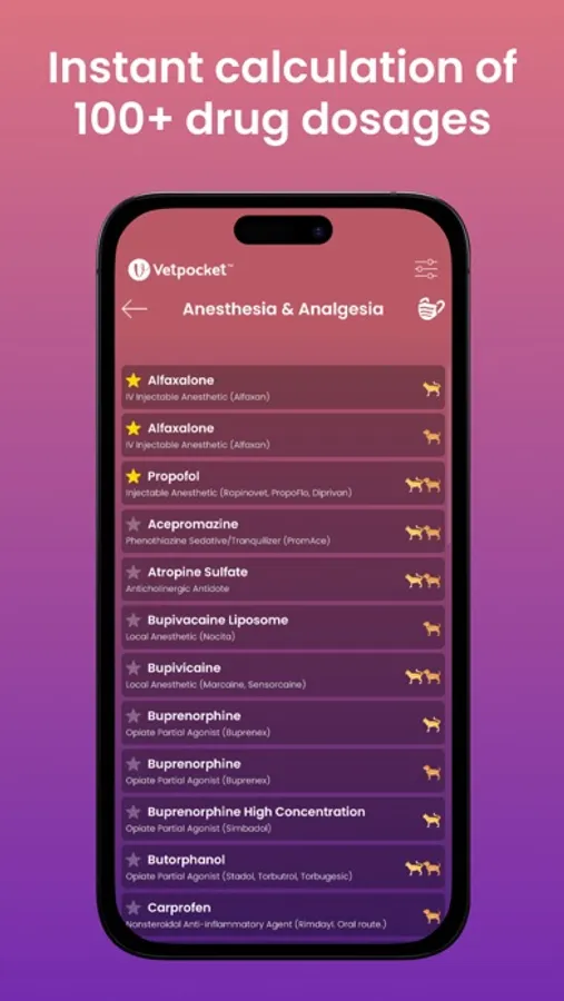 • 140+ pre-filled veterinary drugs with integrated dosage calculators