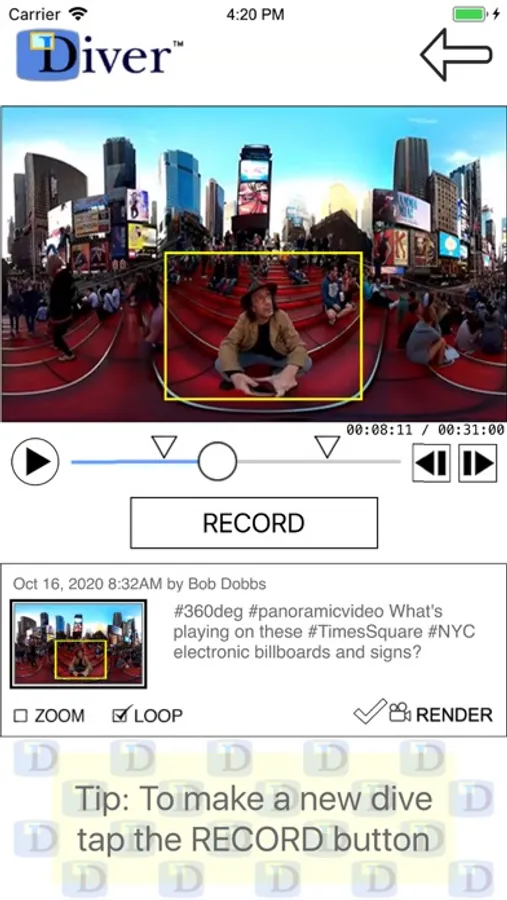 • An updated implementation of Diver's networked/Internet sharing of point-of-view video clips; allowing for a) dives** directly on your own videos or any YouTube*** video, and b) easy social sharing of dive clips on e.g. Twitter or Facebook.