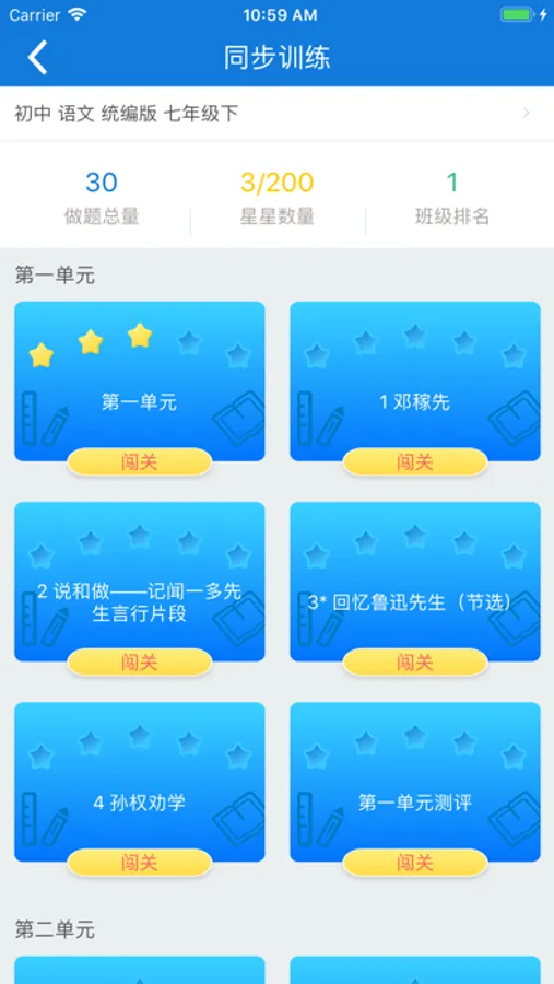 为学生提供同步自主训练,闯关激励制度,激发学习兴趣;