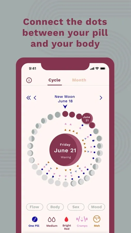 • See an integrated view of your cycle to see how your pill, period, and body affect your month.