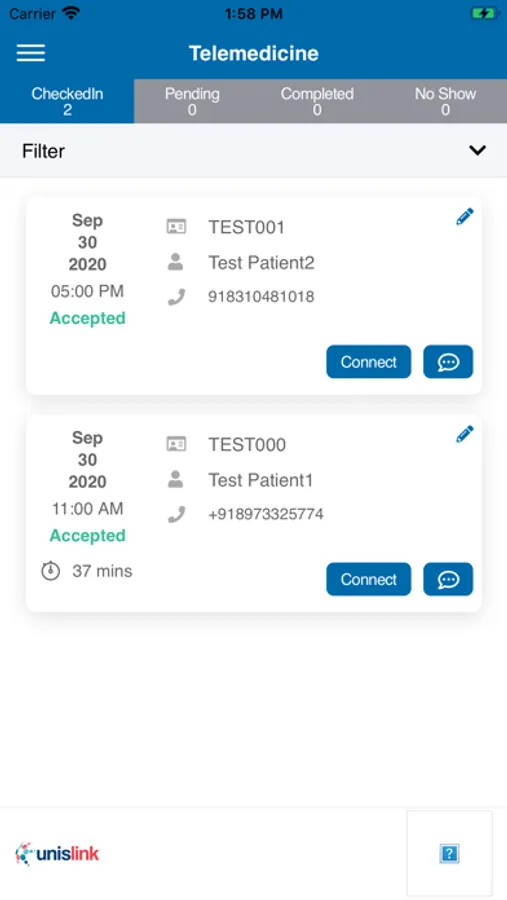 The UnisLink Engage app allows a patient to