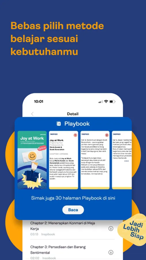 Over a thousand of curated micro-learning content for immediate knowledge: bite-sized learning podcasts, mindfulness and audio guided meditation content, world best-selling book summaries (Inspibook), world best business case studies (Inspigo Case Study), and career how-tos guide (InspiGuide), that are wrapped in 15-20 minutes duration.