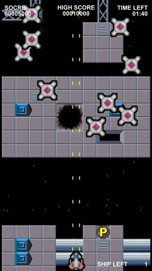 ・左右型中ボスは左右同時(0.5秒以内)に倒すと80000点ボーナス。
