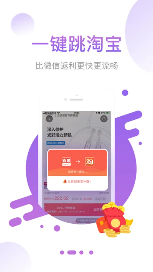 “省果”是一款集中了各个平台优惠券的APP,省果中每天更新 淘宝、天猫的所有优惠券信息,网购前可以在省果中查找自己想购买的商品中有没有是优惠券。