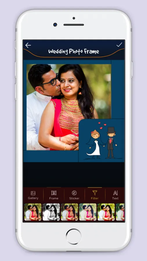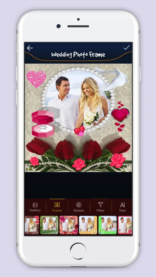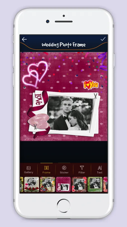 - Two Finger Gestures to ZOOM your photo and adjust in the Wedding frames.