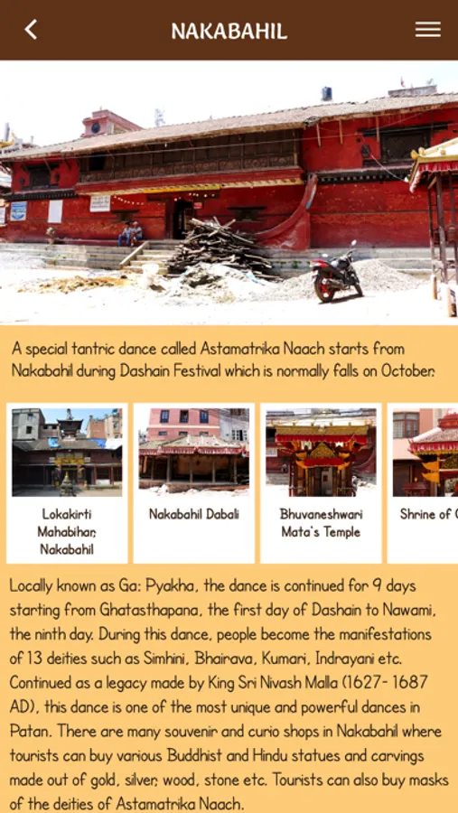The Patan Heritage Walk App provides the official tourist information of Patan which has been accrediated by the Lalitpur Metropolitan city and the locals of Patan. In this App, you will find tourist information which has been collected in every corner of Patan. It gives information about the temples, monasteries, architecture, arts, crafts and culture of Patan. The sources of information are locals and it tells stories about local customs, values, cultures and way of life.