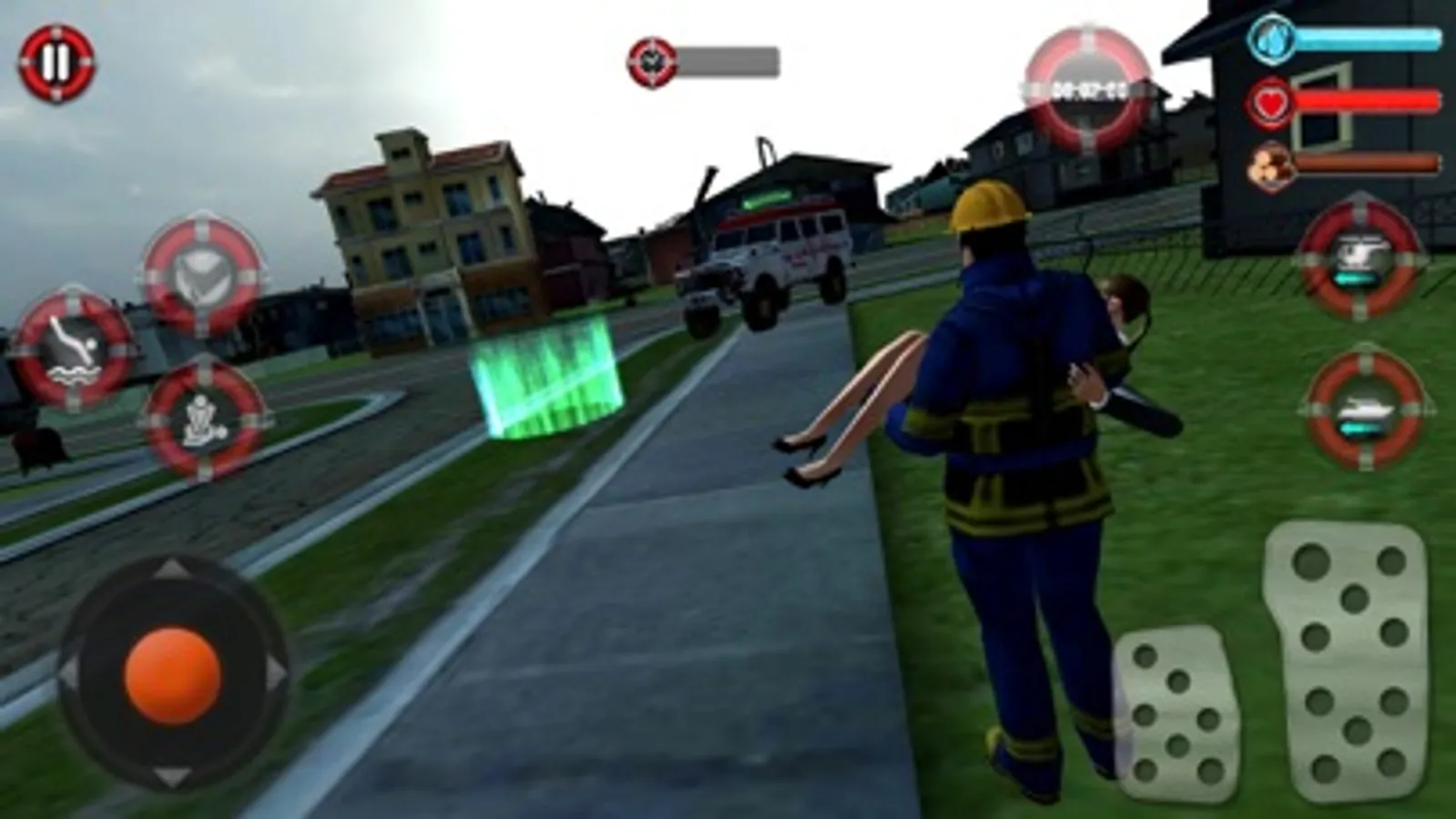 Drive a cool truck and rescue cars. Operate a sci-fi hover car! Put out raging fires and stop water leaks. This game is about being a brave soldier and sacrificing your all! Raise your reputation and rewards with the more people you rescue. Play the role of police officer, firefighter, and paramedic all at once!