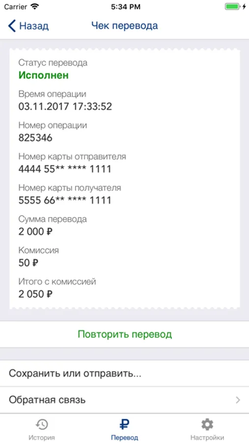 - Чек о переводе можно отправить на электронную почту, сохранить или распечатать