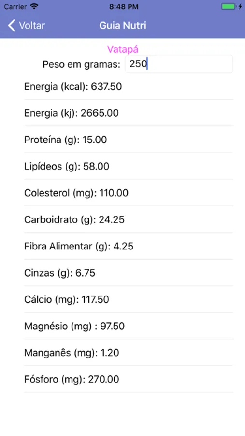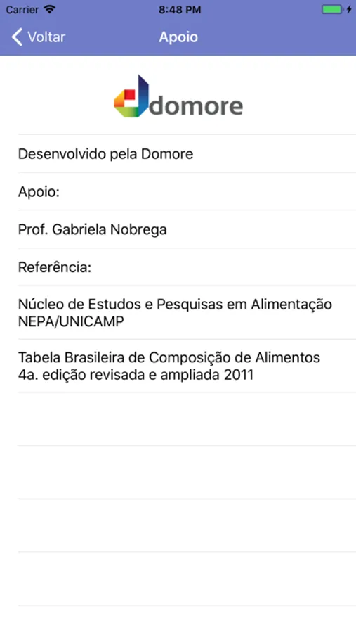 O aplicativo torna simples o acesso a informações de minerais, vitaminas, proteínas, calorias, colesterol etc. Além disso permite o cálculo das características do alimento de acordo com as porções a desejadas em gramas.