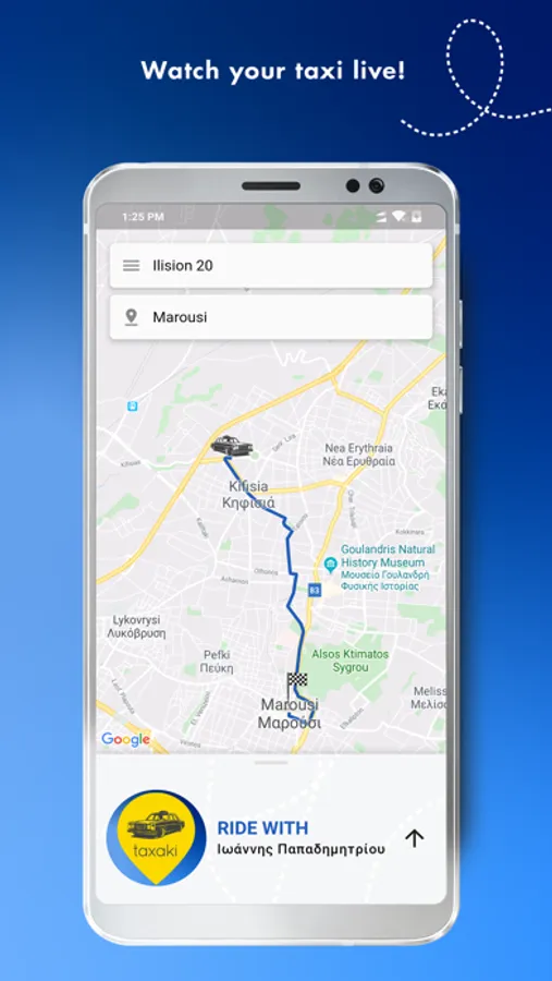 Για τη διευκόλυνσή σας, το Taxaki Galaxy είναι συνδεδεμένο με τα Google Maps προκειμένου να μπορείτε να παρακολουθείτε τον οδηγό σας καθώς σας προσεγγίζει.