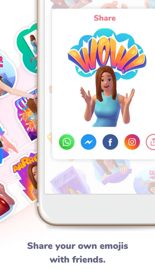 Dress up your avatar, adjust any facial or body features, and enjoy a huge library of 3D stickers, ALL featuring you. How cool is that!