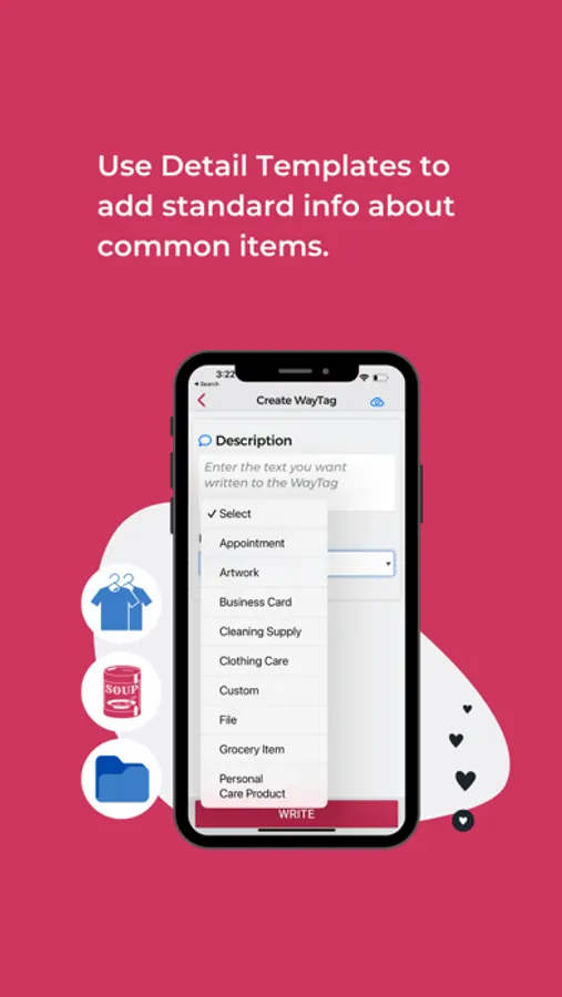 The EASIEST way to get TONS of accessible info! Put a WayTag NFC tag (sold separately) on clothes, meds & more. Tap your smartphone to quickly read & write info.
