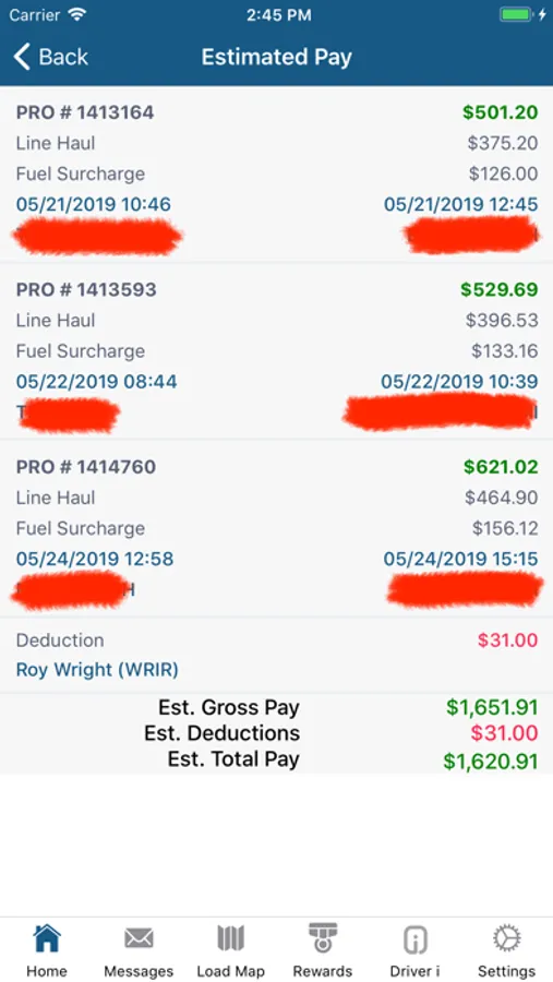- View estimated pay and missing paperwork with ability to scan images for submission.