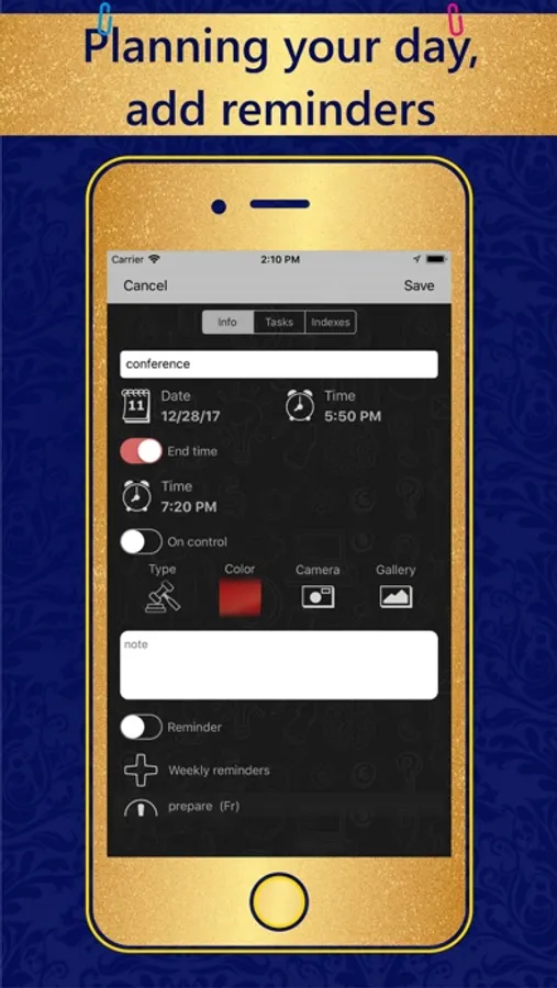 • CUSTOM REMINDERS - One time, weekly, monthly reminders will help you focus on your most important goals.