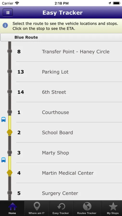 Using the “City of Stuart Tram" mobile application from "TSO Mobile" you can find the estimated time of arrival for each route's vehicle and for each tram stop and a map of all city routes (Red and Blue). The free application runs on smart mobile devices. There is an equivalent website at http://publictransportation.tsomobile.com/Stuart.htm. For general information visit the City of Stuart web site http://cityofstuart.us/index.php/tram-routes-info