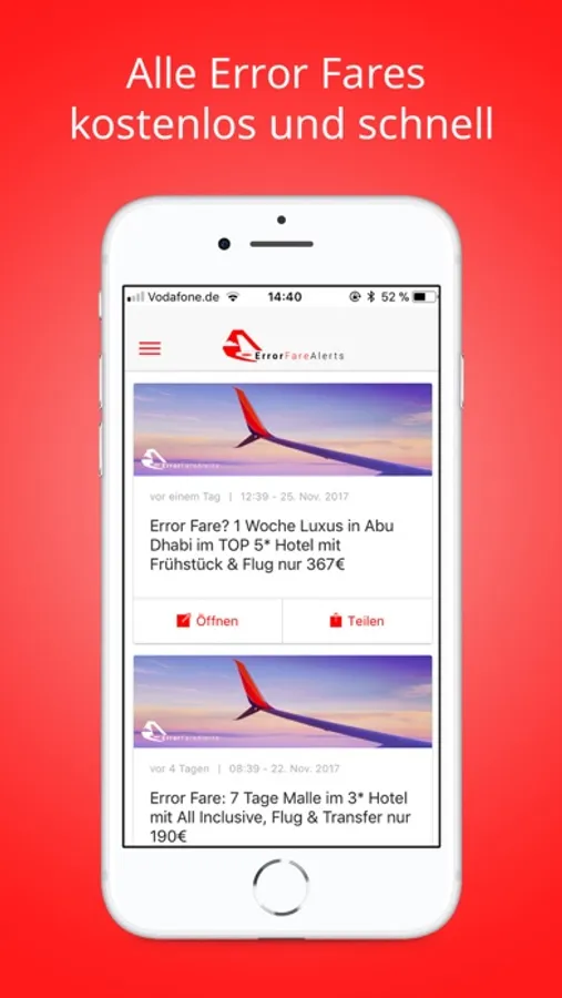Durch die Push-Benachrichtigung der App erfährst du immer als einer der Ersten über solche Reiseangebote und kannst dadurch buchen, bevor der Fehler behoben ist oder das Angebot ausgebucht ist. Damit sparst du bares Geld bei deinem nächsten Urlaub!