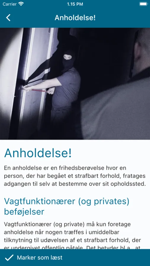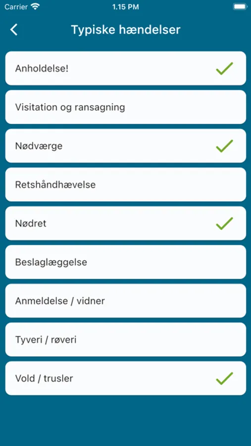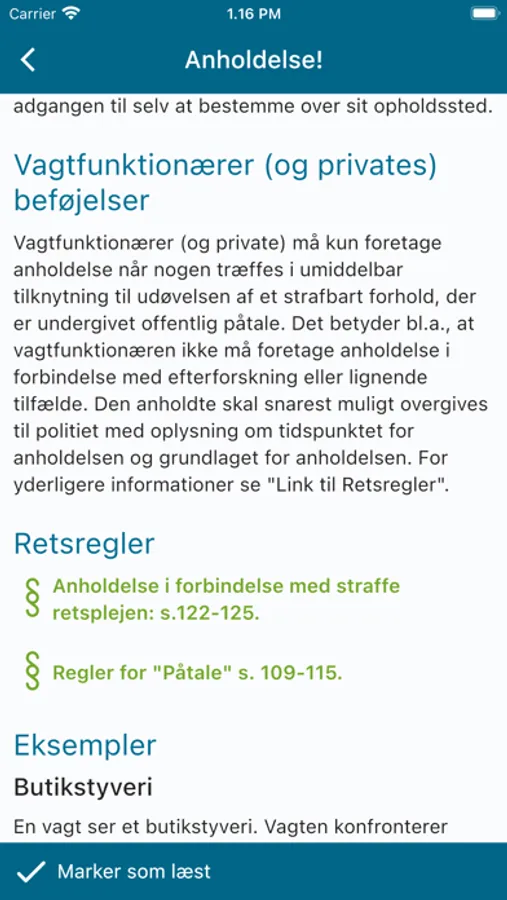 bruge appen som et hurtigt opslagsværk i forhold til konkrete hændelser, der kræver kendskab til