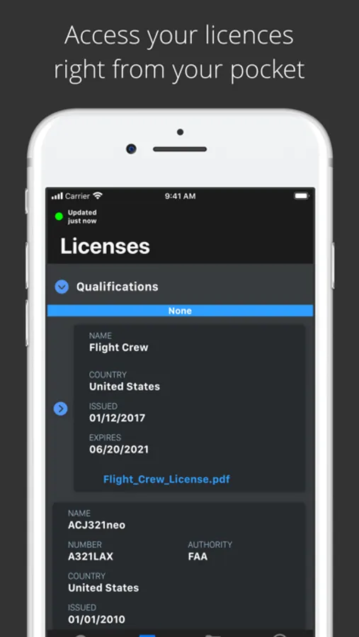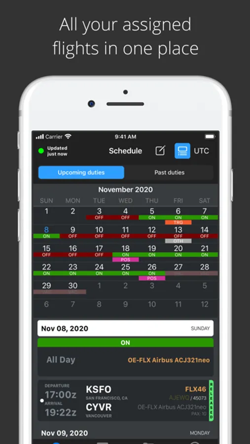 Automate your communication. Access real-time information and enhance communication with all your crew members. Keep your crews in the loop. Pilots can access their full flight schedule, flight briefings and all licences, IDs and passports from the app - even when they're offline during the flight.