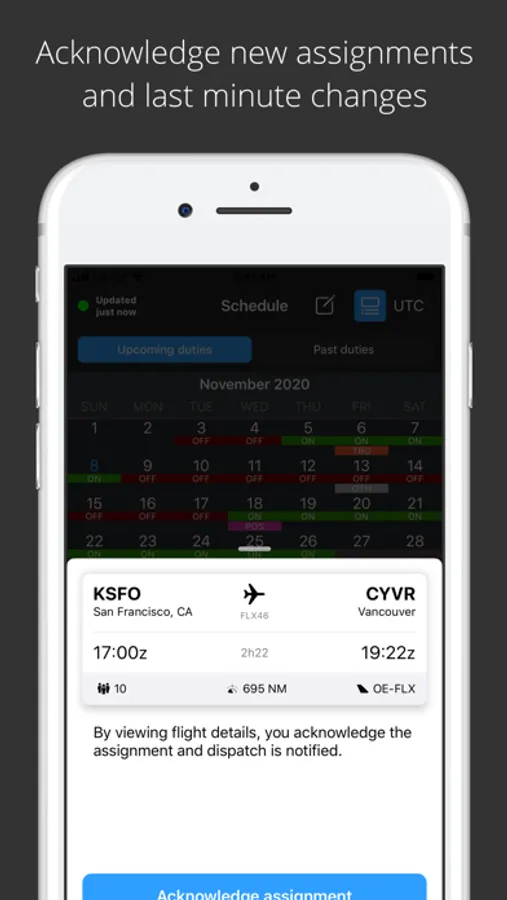 They receive notifications when they receive a new flight assignment or a change to a current assignment.
