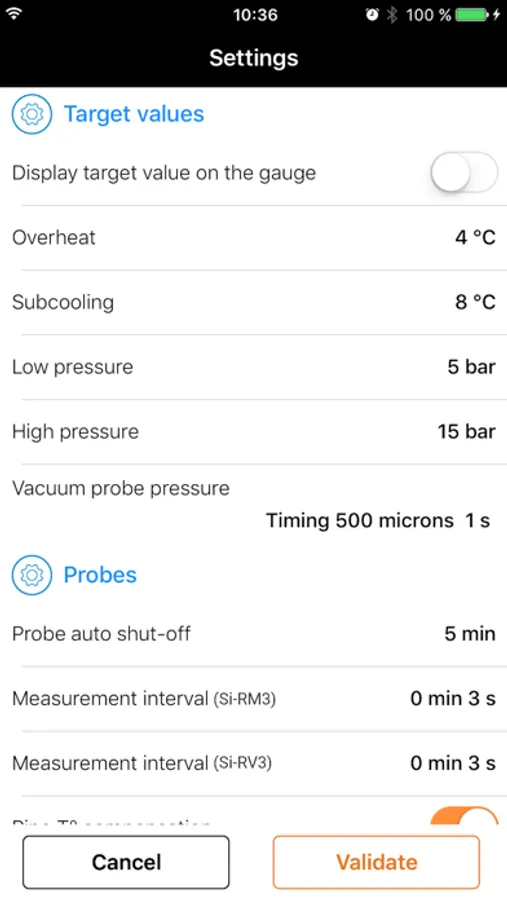 This App is used to instantly and accurately display numerous measurements, including pressure, temperature, etc., for the Si-RM3, Si-RM13, Si-RV3, and Si-RM1. It comes with long-range low-energy Bluetooth® 4.2 up to 30 meters (98 ft) and the ability to store and update approximately 120 refrigerants, including environmentally-friendly low global warming potential (GWP) and natural refrigerants.
